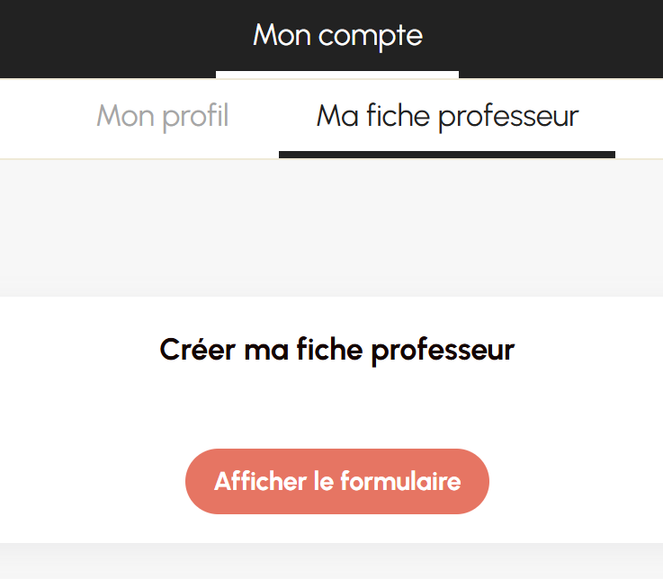 Dans la section Ma fiche professeur, rendez-vous dans la partie « Créer ma fiche professeur ».